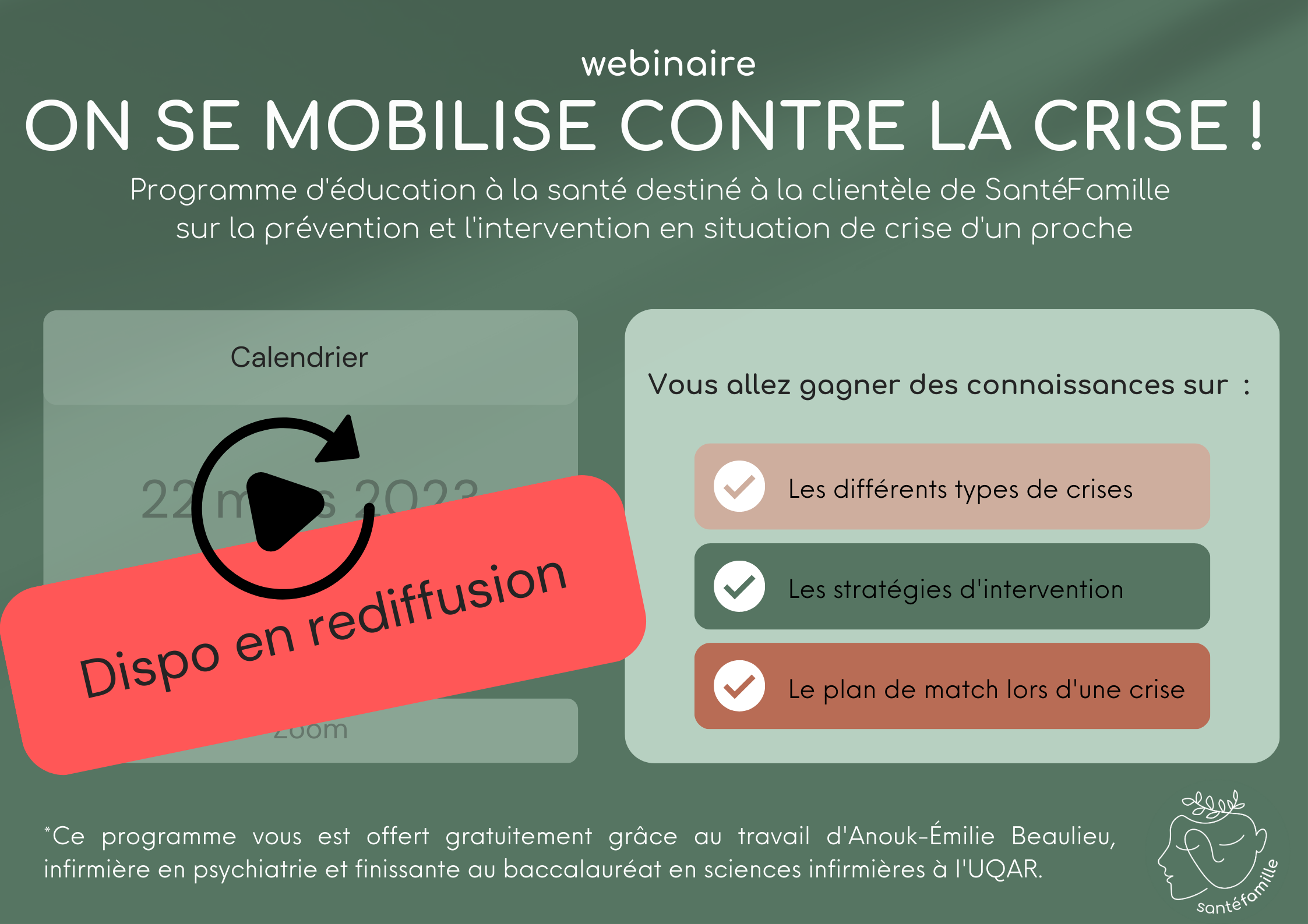 C'est à la lumière de cette réflexion que l'organisme à but non lucratif SantéFamille a été fondé : un environnement d'apprentissage dédié à la famille d'un proche qui vit avec un problème de santé mentale.